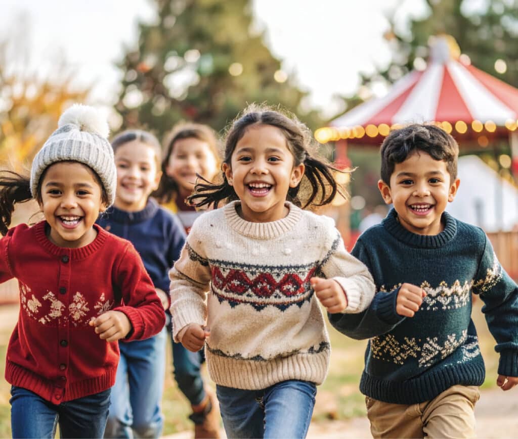 Located adjacent to the Village Square, our half-acre Kid Zone is a must-visit spot! Surrounded by a charming iron fence, this magical play area is packed with fun and excitement, making it the perfect place for little ones to run, play, and create unforgettable holiday memories.